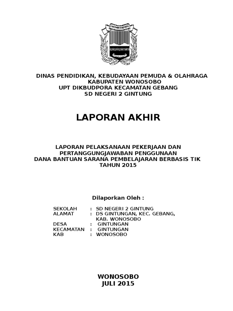Pengumpulan LPJ memakan waktu yang lebih lama. Salah satu dokumen yang diminta dalam LPJ BOS BA-BUN adalah Laporan Neraca Penggunaan Dana. Contoh laporan pertanggung jawaban lpj bantuan dana desa KATA PENGANTAR Dengan memanjatkan fuji dan syukur kehadirat Alloh SWT atas segala rahmat dan karunia-NYA kami dapat menyelesaikan program kegiatan sebagaimana yang kita harapkan dengan telah selesainya pelaksanaan kegiatan Bantuan Dana Desa Tahap 1 Tahun 2015.