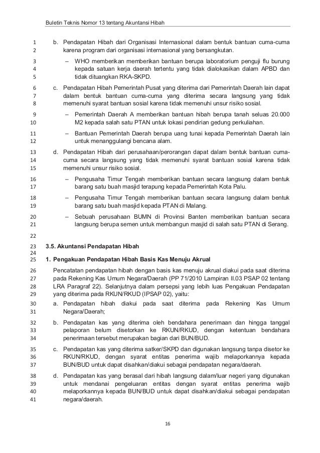 Penerimaan hibah dari pihak lain harus dilakukan dengan hati-hati karena tidak jarang penerimaan hibah tersebut memiliki motif ekonomi dan sosial yang dapat merugikan kepentingan bangsa. Oleh karena itu diperlukan persyaratankondisi. Buletin Teknis 08 tentang Akuntansi Utang telah diganti dengan bultek 22 Buletin Teknis 09 tentang Akuntansi Aset Tetap telah diganti dengan bultek 15 Buletin Teknis 10 tentang Akuntansi Belanja Bantuan Sosial.