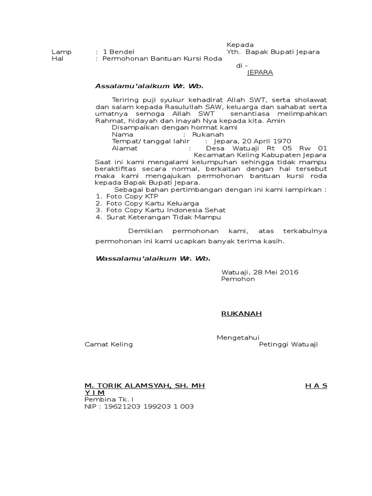 Contoh Terbaik Surat Permohonan Kursi Roda Pada Dinas Sosial Cute766